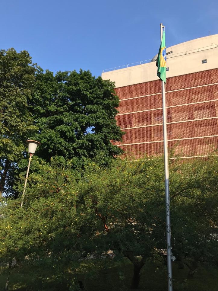 Me despeço com gratidão pelo prédio projetado por Niemeyer onde pude trabalhar, da vista linda das janelas, e dos jardins de Burle Max, que sempre me alegraram, especialmente das árvores de tronco marrom claro e flores de bolhinhas amarelas do estacionamento, e das flores cor de rosa gigantes que viram cocos no final da estação.