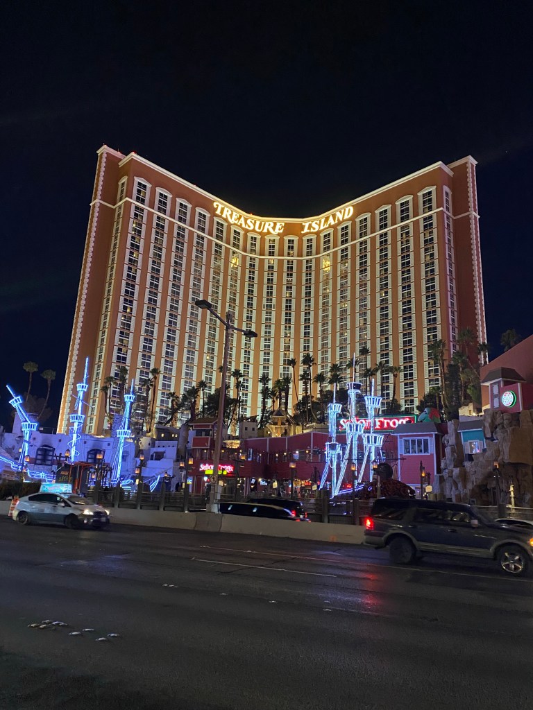 Nós tínhamos um preconceito meio bobo com a cidade da diversão. Mas desta vez fomos preparados para uma dose boa de cafonice e entramos no clima. Nos divertimos bastante. A cidade é muito bizarra. Tudo que o homem já vez de fantástico está ali, em algum lugar, especialmente na principal rua, a Strip. Tipo um Epcot Center gigante para adultos. Subitamente você se depara com a Torre Eiffel, com uma “London Eye”, com a Fontaine de Trevi, o Coliseu, a Estátua da Liberdade, o Moulin Rouge e muito mais. E muitos hotéis são temáticos, tipo Tresure Island, Flamingos, Excalibur.