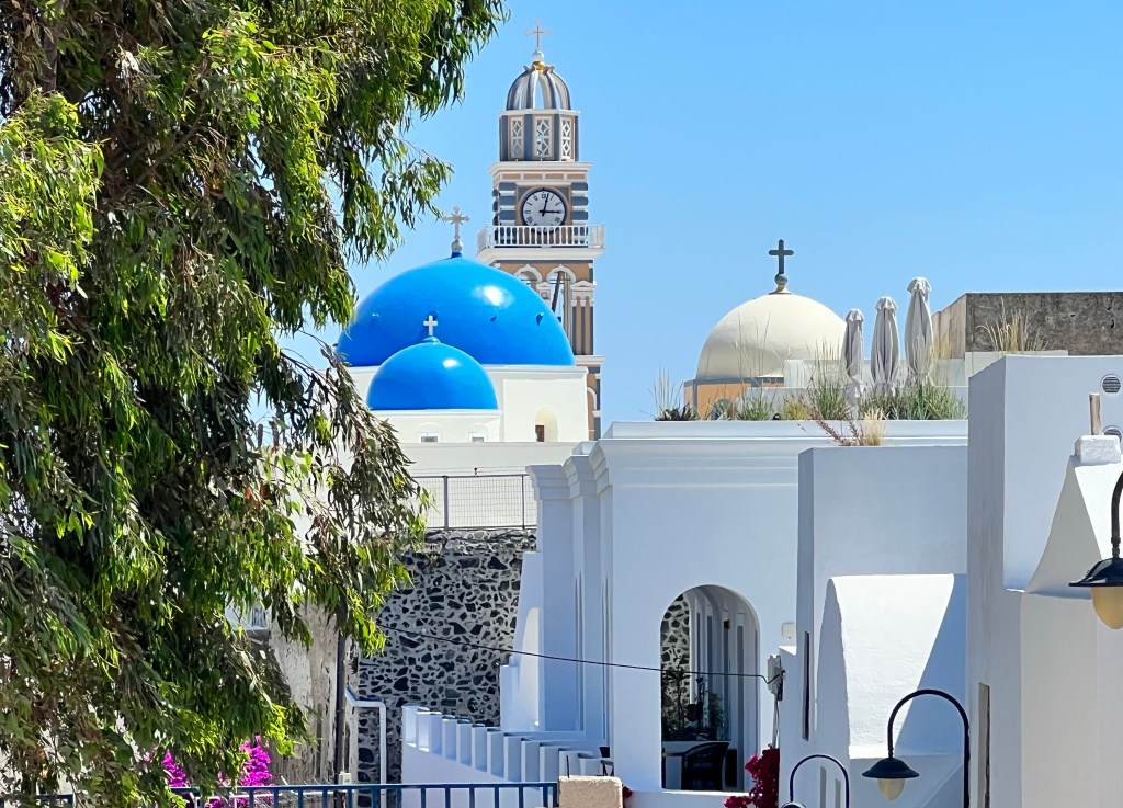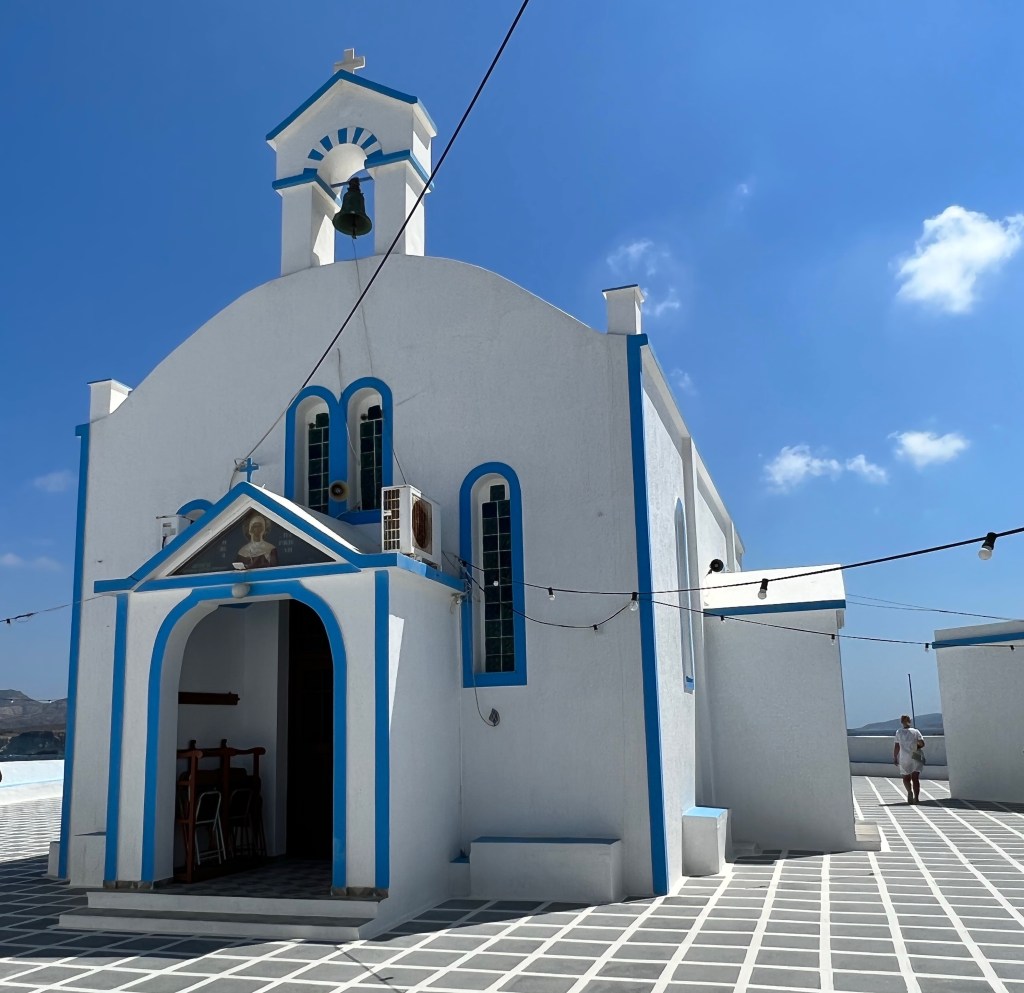 No dia seguinte alugamos um quadriciclo para conhecer Thira (se fala Firra) e Oia (se fala Ia), desafiando toda nossa usual sensatez. Marido amou. Eu suei as mãos e taquicardizei em todos os trajetos. Se existe outra encarnação, com certeza já morri caindo de um precipício. E as estradas são todas na beira de lindos precipícios… Pelo menos seria um fim romântico. Mas deu tudo muito certo.
