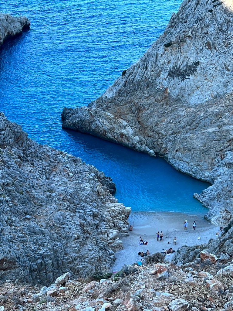 D1 fomos ao lago de Kournas andar de pedalinhos e mergulhar. Depois na famosa praia do cenário de “Zorba, o grego” e em seguida até Seitan Limania.