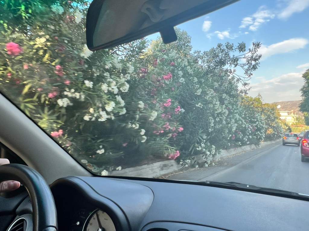 As cidades e estradas em geral tem muitas espirradeiras e agora em junho estavam todas floridas. Lindo de ver.