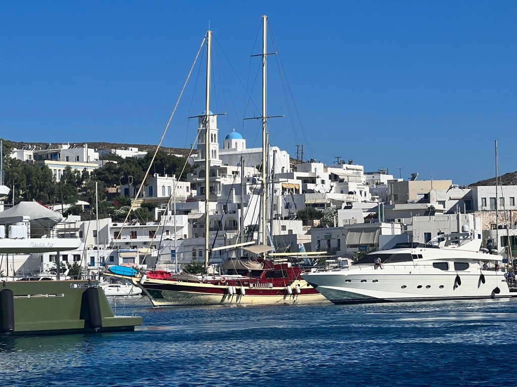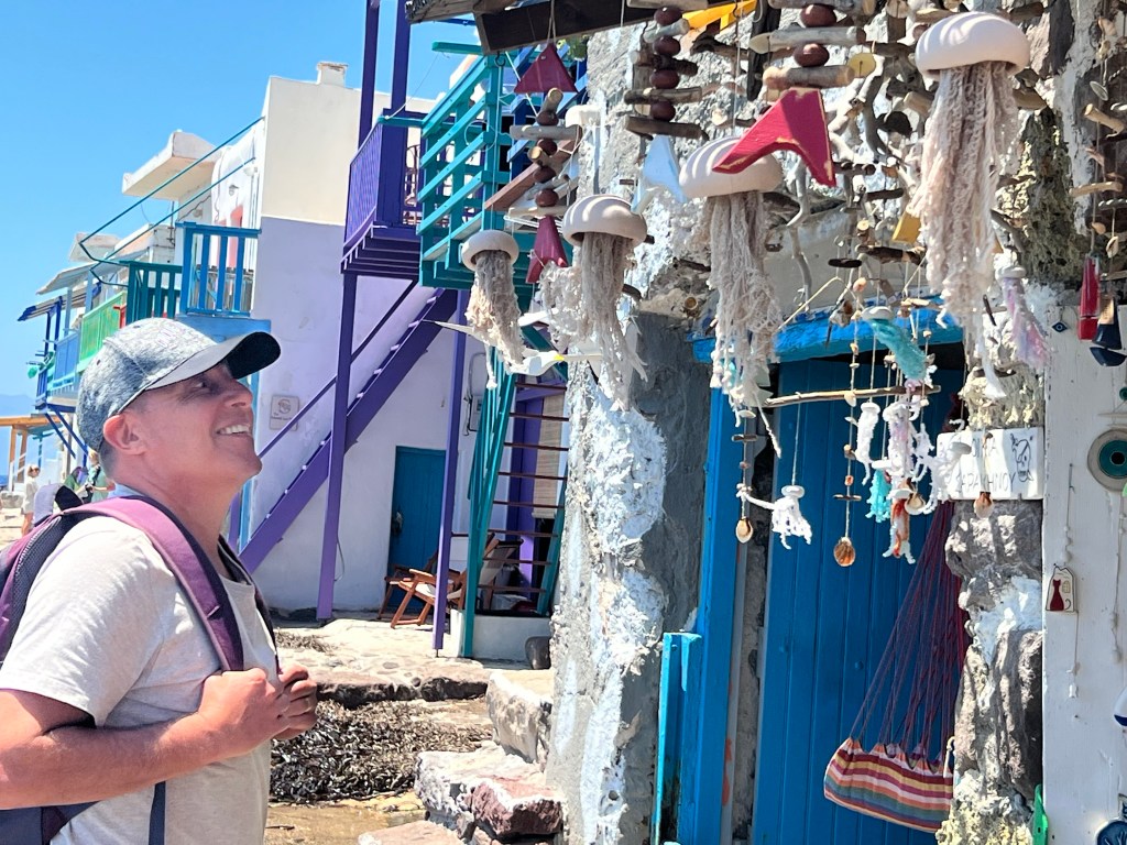 No dia seguinte conhecemos de carro o restante da ilha e muitos lugares que passamos de barco. Adorei especialmente as vilas dos pescadores, Mandrakia e Klima. Queria muito ver os polvos secando ao varal e as casinhas coloridas.