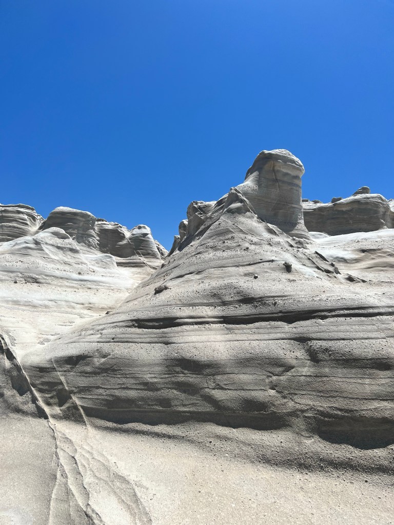 Também visitamos Sarakintos ao norte, mesmo estando ventando muito e com aquela ressaca. O lugar é realmente muito bonito. Faz jus a fama. Formações rochosas incríveis. Tiramos lindas fotos.