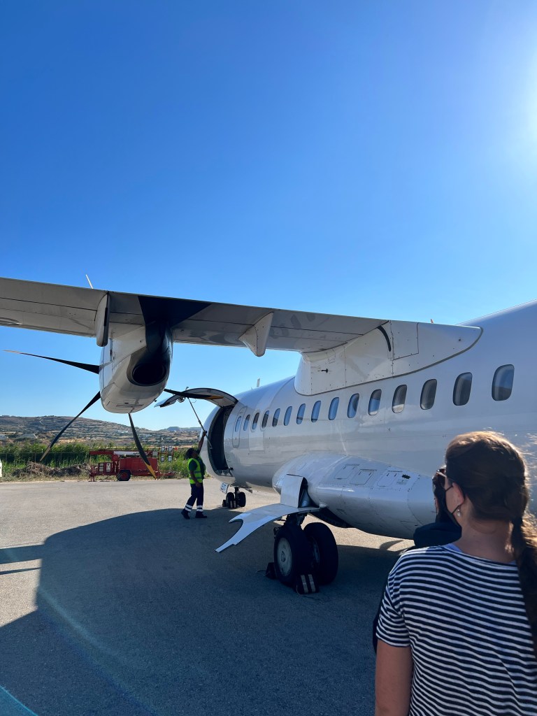 De Milos partimos para Kefalonia, lugar menos conhecido no Brasil, que fica em outro grupo de ilhas mais distante de Creta e das Cyclades. Voamos até lá de SKY Airlines, aviãozinho pequeno.