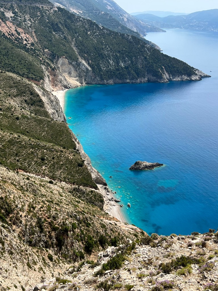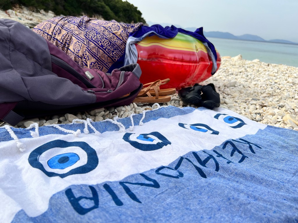 Existem muitas dicas de praias fantásticas e desertas na ilha. Minha conclusão de casal de 56 anos (levem isso em consideração) e depois de ver quase todas, foi a mesma dos gregos: quero é sombra e água fresca, pois o mar é lindíssimo em qualquer praia deste país. Sendo assim, na minha humilde opinião, citando um exemplo da Kefalonia: a praia de Vouti é uma Myrthos reduzida, sem aquela visão do alto (espetacular por sinal, pare nos mirantes), mais rústica. Assim como não vale pipocar em outras da mesma enseada, como Kiriati. Percebendo isso, Fteri (totalmente deserta), foi abduzida do roteiro. Marido se recusou a pegar um barco (sai de Agia Kiriati) ou caminhar no meio do mato, pois tudo já estava maravilhoso e lá teríamos que sentar nas pedrinhas e complicar nossa vida com caminhos estranhos e barqueiros. E tive que concordar.