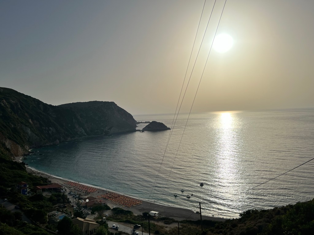 Na região de Sami (o vilarejo em si não nos encantou) fomos duas vezes em Antisamos, uma praia linda, com ótima infraestrutura, onde o kit espreguiçadeiras/guarda-sol na beirinha do mar custava uma consumação de 20 euros. Como o chopp grande da cerveja local Mithos (muito boa por sinal) custava 4,5 euros, achamos um ótimo custo-benefício. Antisamos fica perto da Melissani Cave e tem também tem várias atrações aquáticas e um cais pequeno bonitinho.