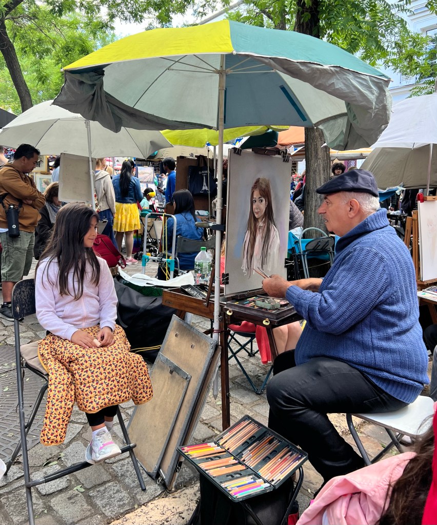 Tem uma grande praça, logo após a Basílica (que você pode subir de escadas ou de bondinho), andando para a esquerda, que tem restaurantes e bares e fica lotada de artistas fazendo retratos dos turistas.