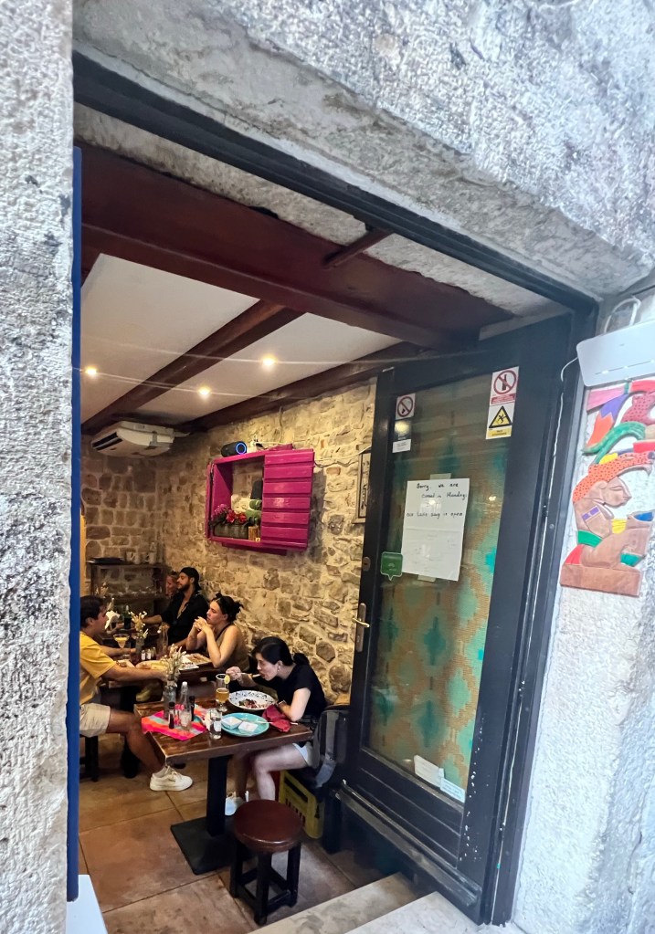 Destaque de restaurante para o Kinoteca, uma antiga videolocadora (a conta vem dentro de uma caixa de VHS antiga) transformada em konoba. Comida boa e ambiente muito bonitinho, reservamos e demos sorte de conseguir uma mesa que ficava dentro de uma pequena capelinha, super romântica.