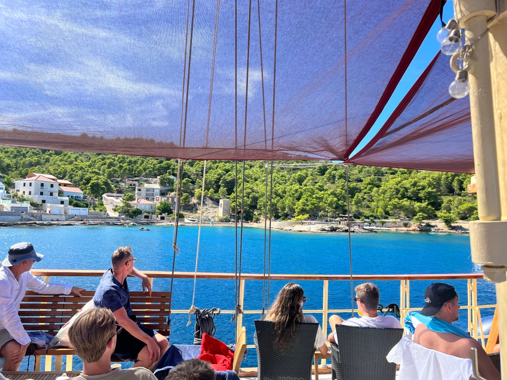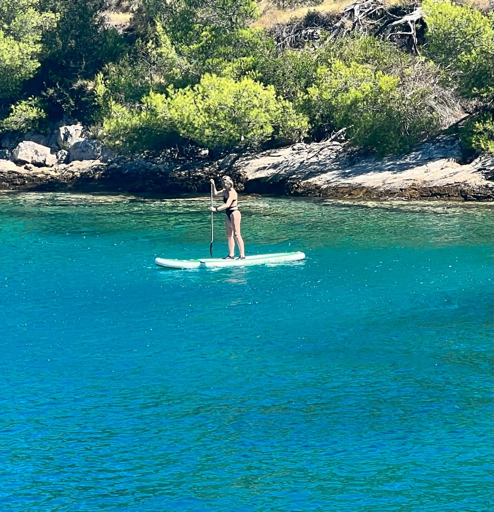 Ficamos 3 noites em Split, o dia que chegamos (já de tardinha), um dia inteiro para ver a cidade em si e no outro decidimos fazer um passeio de saveiro (dia inteiro, tudo incluído, reservado pela Civitatis), que era muito bem organizado com roteiro pelas ilhas de Brac e Solta. Bons mergulhos, água linda, onde pude curtir um rolezinho de SUP, que amo (adoro a sensação de me sentir flutuando acima da água).