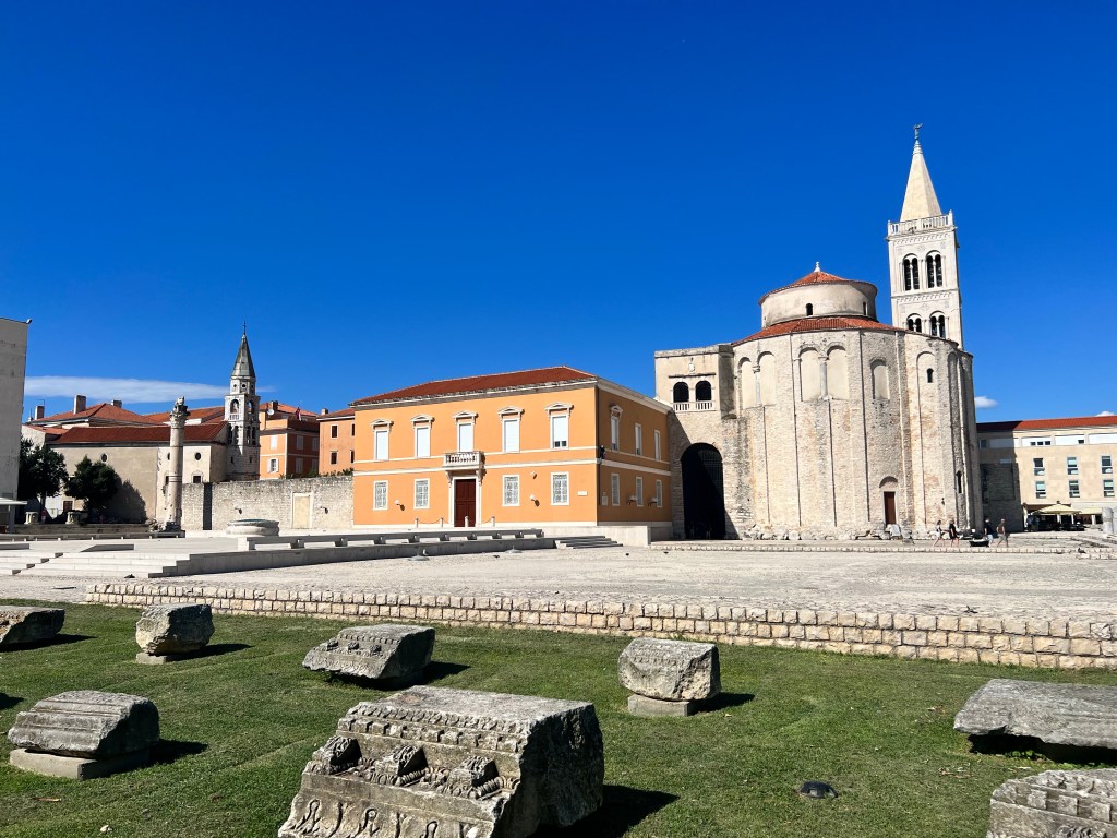 Ficamos em Zadar em um apartamento com uma vista bonita para a ponte. A cidade é bacana, de novo muitas construções de pedra e mar verde azulado lindo.