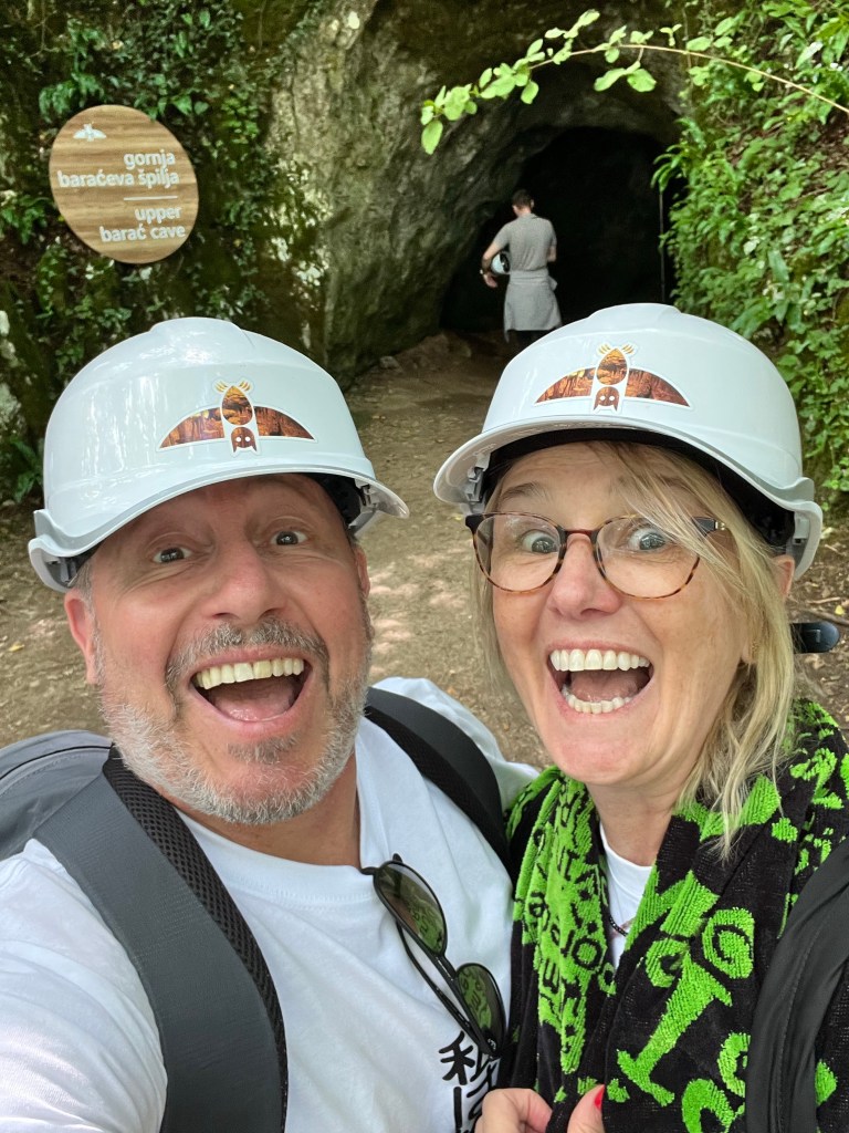 No segundo dia fomos para Pandora, quero dizer, para os Lagos Plitvice, mas tenho certeza que se foi ali que se inspiraram para criar Pandora, o cenário do filme Avatar. Informação importante: compramos o ingresso na hora e não pudemos entrar de manhã, pois o número de visitantes é limitado e já tinha sido alcançado. Precisamos esperar até as 13h. Se puder, é melhor comprar online antes. Ficamos então sem ter o que fazer das 10 às 13h, e fomos visitar uma caverna por perto (Barac Cave), indicada pela atendente do Plitvice. Nos surpreendemos ao saber que a Croácia tem muitos sítios arqueológicos e que inúmeros animais selvagens, como os leões, já viveram ali. Era um lugar muito organizado e deu pra distrair.
