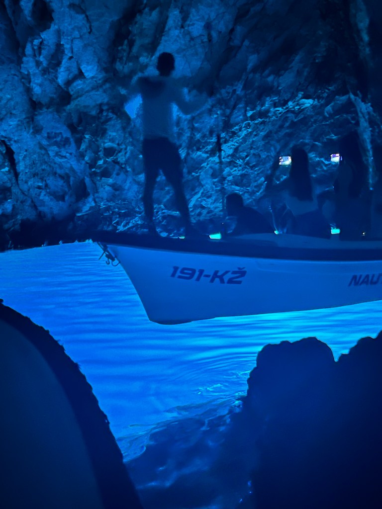 Saímos um dia para um passeio de barco contratado em uma empresa local recomendada pelo dono do nosso apê. Fomos com um grupo de cerca de 10 pessoas (chegamos a olhar o preço de um passeio privativo mas era bastante caro) em um barco não muito grande, até a Green Cave, Blue Cave, Baia Stiniva, Ilhas Pakleni e Vis.