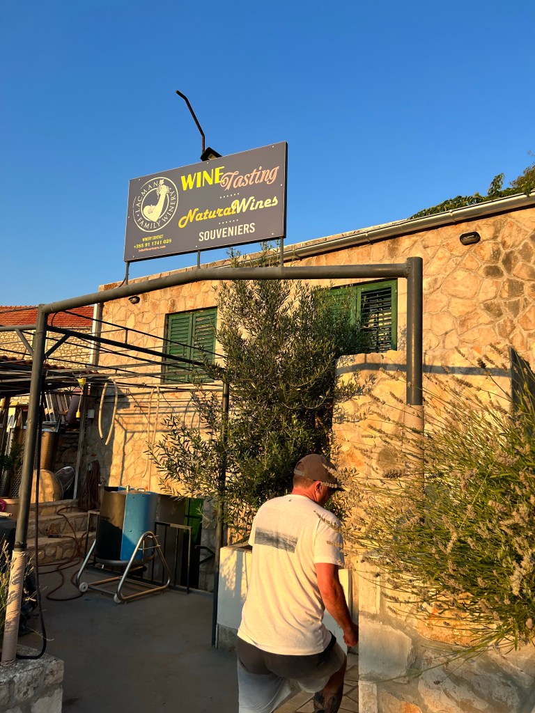 Nos explicaram que a uva do GRK é fêmea e precisa de outra parreira macho, plantada ao lado, para ocorrer a fertilização. A uva “macho” pode variar dependendo da vinícola, mas frequentemente usam a Plavac, que é prima do Zinfandel (californiano) e quem deu origem a ele e aos similares primitivos da Puglia (por sinal amo muito ambos). Importante mencionar que apesar da uva Plavac ter sido a origem dessas outras uvas muito fáceis de gostar, o vinho tinto Croata é bem complexo, principalmente se a única uva for a Plavac, e muito diferente dos seus vinhos “primos”. Sinceramente não gostei, me mantive nos brancos, mas meu marido adorou.
