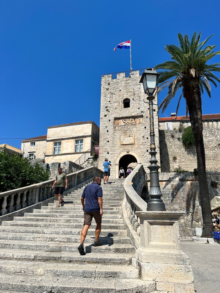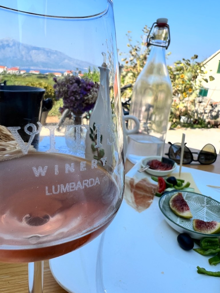 Pegamos um ferry, dessa vez da empresa Krilo, e desembarcamos nas terras do vinho GRK, que se fala com um “r” muuuito arrastado. Vinho único no mundo, uma uva que só existe em Lumbarda, cidadezinha dessa ilha. Muita gente faz um pit stop em Kórcula, deixando as malas no porto (tem guarda-malas), passeando na ilha e seguindo viagem para Dubrovnik no final do dia. Mas como amamos vinhos, ficamos duas noite ali e achei que valeu muito a pena.