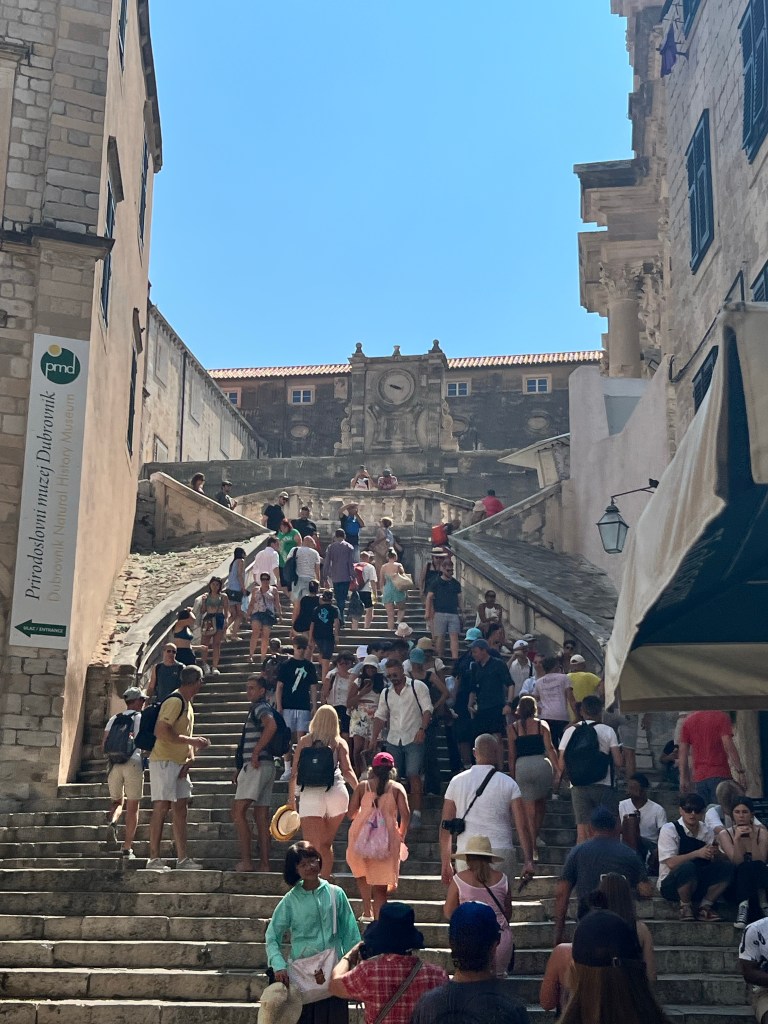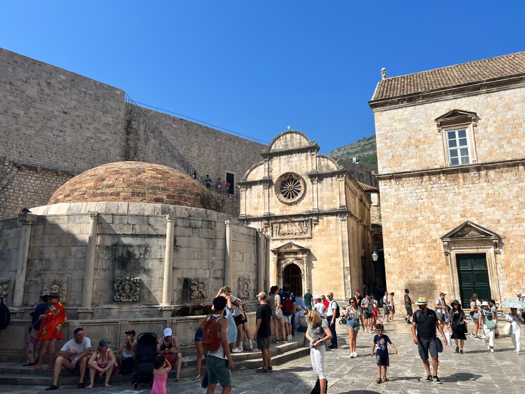 Em Dubrovnik estão diversos cenários da série Game of Thrones. Os guias contam muito sobre as filmagens que pararam a cidade e há tours especializados no tema e muitas lojas também. Fizemos um walking tour misto (histórias da Croácia e dos cenários da série). Até fiquei curiosa sobre a série, pena que não tenho estômago para toda aquela violência explícita, pois o restante do roteiro parece ser muito bom.