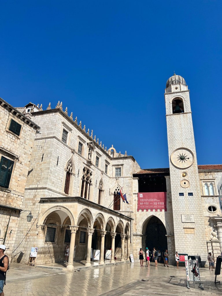É bastante fácil entender o centro histórico, pois há duas compridas transversais, sendo que a maior é uma avenida chamada rua Stradum, e muitas perpendiculares estreitas. Dois grandes portões (portas Ploče e Pile) completam toda área de interesse. Algumas praças também são pontos de referência, especialmente a praça de Luza, perto da porta Ploče, com a coluna de Orlando, a igreja de São Brás (padroeiro da cidade) e o relógio, e do lado oposto, a praça onde está localizada a Grande Fontes de Onório (de onde saem os “walking tours”), mais perto da porta Pile.