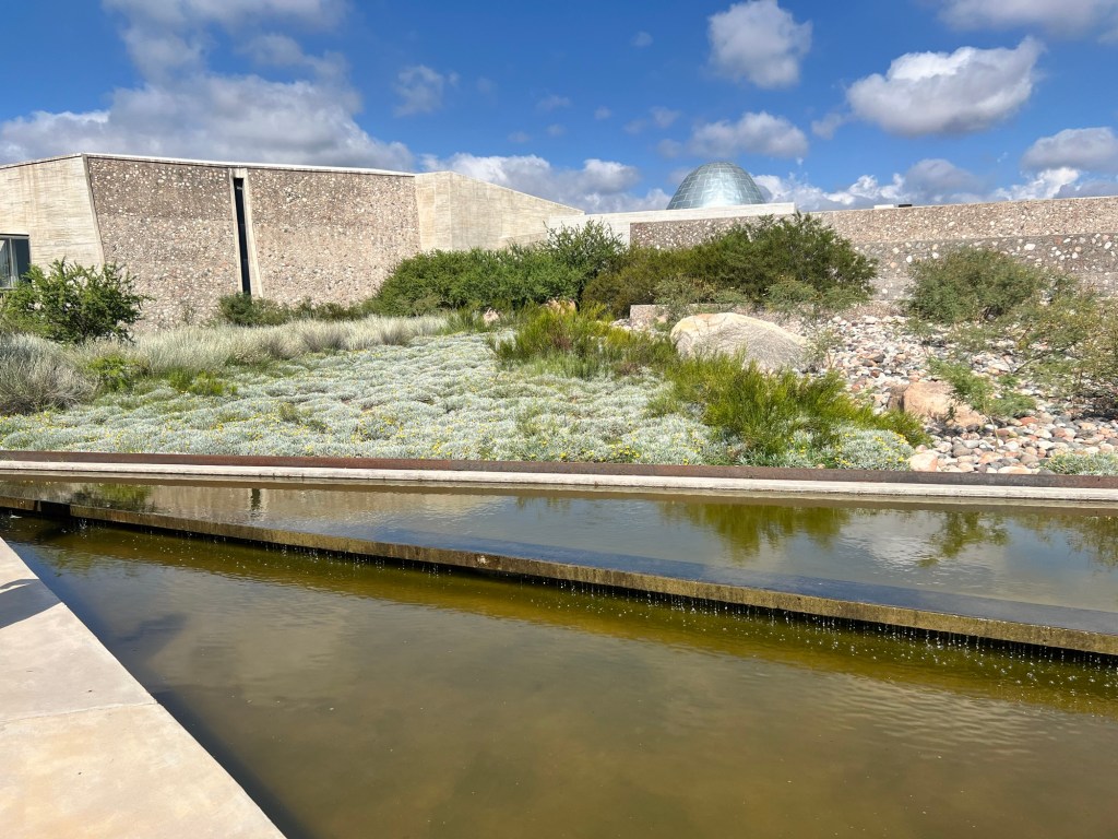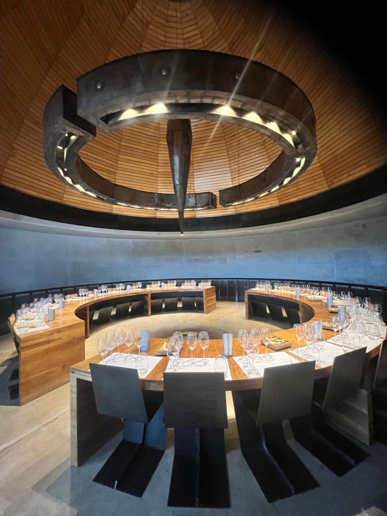 A arquitetura da Pedra Infinita é muito bacana, e adorei a história de sua construção e a concepção do seu nome. A área desértica enorme foi comprada para alocar novas videiras da Zuccardi (hoje a maior parte dessas plantações em Mendoza ficam nas regiões mais altas, exatamente no Vale de Uco) mas também para o projeto de uma experiência única com o vinho.