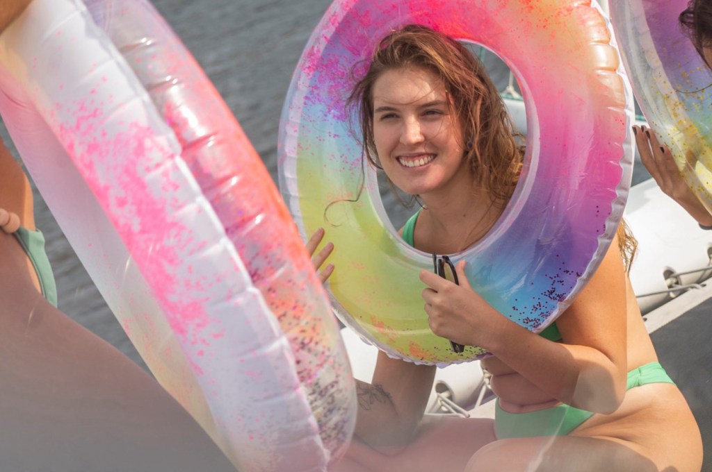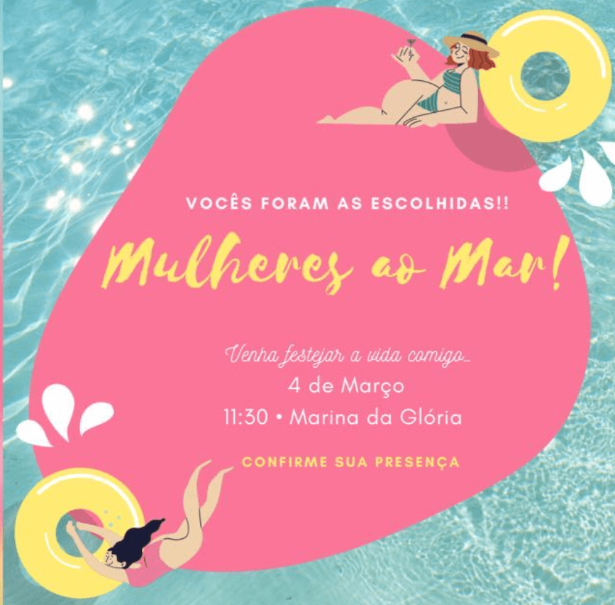 Batizei o evento de “Mulheres ao Mar” e desde o planejamento foi um acontecimento (como disse uma das amigas… arrasei no “pré festa”). Criei um grupo de mensagens, todas nós demos palpites nas músicas para a playlist, compartilhamos os modelitos, comprei boias coloridas, e, como nem todas se conheciam, inventei de apresenta-las umas às outras, sob a minha visão particular. Para isso, coloquei fotos e fiz pequenos textos sobre essas criaturas maravilhosas. Nos divertimos muito com elas conhecendo e reconhecendo umas as outras através de minhas mensagens especiais, que eram o meu olhar amoroso sobre cada uma delas.