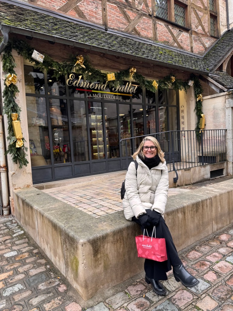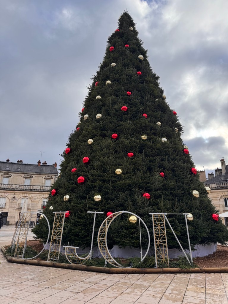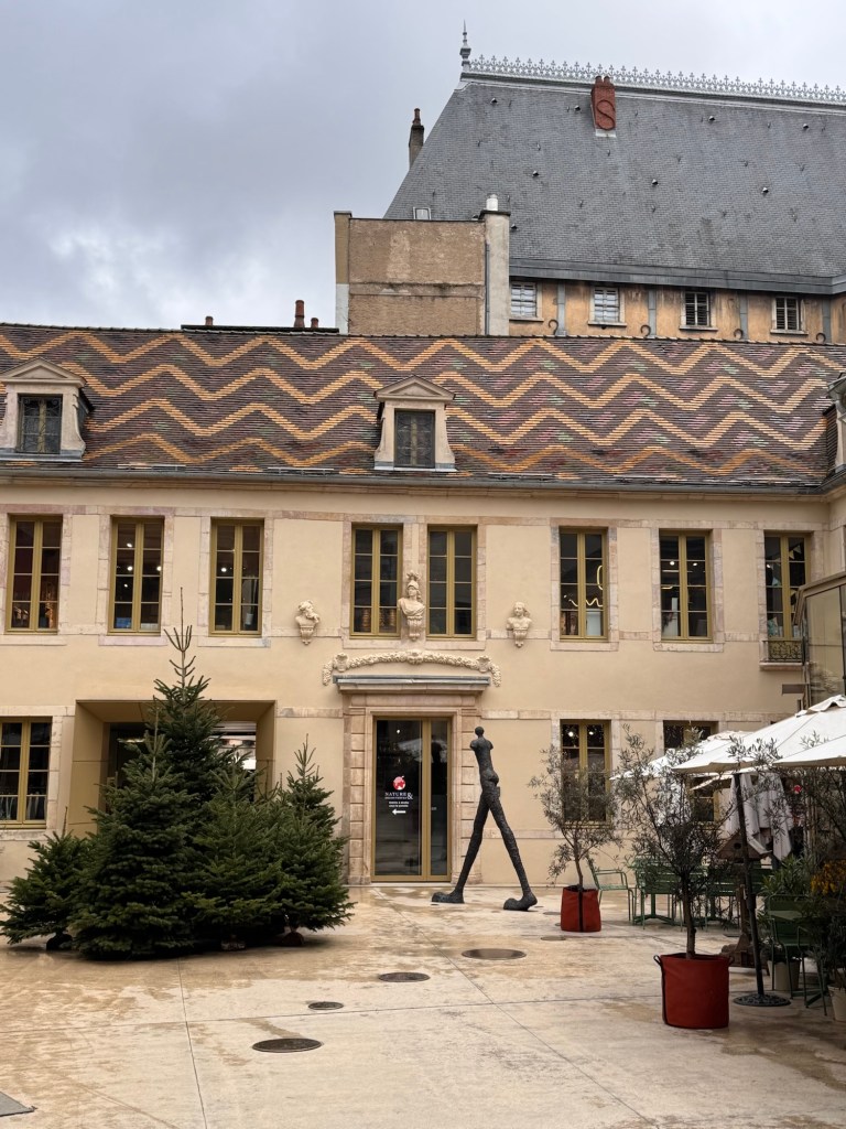 Dijon é muito bonita. O centro histórico é pequeno, todo “caminhável”, com construções belíssimas. Começamos fazendo a rota da corujinha (um trajeto para não se perder nenhuma das atrações da cidade medieval, se guiando por corujas douradas gravadas no chão), mas no fim fugimos das sinalizações, distraídos com lojinhas e mercadinhos de Natal. Tem um aplicativo baratinho, onde podem checar as orientações e descrições. Acabou sendo bom só para checar se não tínhamos perdido nada – basicamente o museu de Belas Artes (grátis), o palácio dos duques de Borgonha, as igrejas e as lojas das mostardas famosas como a Edmond Fallot e a Maille.