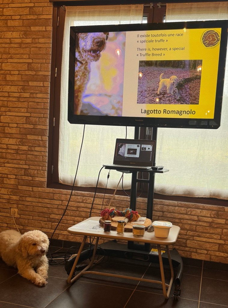 Outra aventura que fizemos por lá foi a “caça as trufas”. Agendamos pelo booking na Maison Aux Mille Truffes. Foi muito interessante entender melhor este fungo, que contaminam as raizes de algumas árvores, especialmente carvalhos, produzindo hifas gigantes, que se espalham superficialmente pela terra, até bem longe destas raizes originais. Essas hifas produzem “frutos” que são as trufas. As hifas com o tempo morrem largando seus frutos bem superficiais no terreno. Cães farejadores e fanáticos por estes frutos (sim, eles caçam porque gostam de comer as trufas) são capazes de encontrá-las para os homens. Uma raça específica, os Lagotto Romagnolo (parecidos com um poddle mediano), são os que mais instintivamente fazem isso, não precisando quase de treino. O que nos acompanhou era uma femea fofa e alegre, que rapidamente marcou o local para cavar. Uma pena que estava chovendo bastante. Depois das explicações e a demonstração finalizamos com um almoço todo “trufado”, incluído no pacote, no restaurante da própria Maison, que também aceita clientes que não fazem a “caça” para comer. Há uma lojinha com muitas especiarias. O ambiente é decorado com as raízes das árvores no teto.